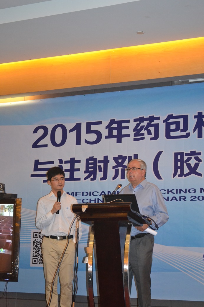 我公司還特別安排了華蘭技術(shù)經(jīng)理朱銀華博士就注射劑首選覆膜膠塞的技術(shù)要求及覆膜膠塞在應(yīng)用中的注意事項做專題介紹,專業(yè)的數(shù)據(jù)分析,敏捷的思路讓朱博士的講解得到了與會代表的一致認(rèn)可。為保證技術(shù)研討會效果,公司還請來了五十多年來在歐洲從事注射劑內(nèi)包材瓶塞技術(shù)研究、DMF技術(shù)審評的奧托博士、賈米爾先生與大家交流互動,奧托、賈米爾先生就膠塞成分對藥品的影響及如何滿足歐洲藥包材DMF文件的編制及標(biāo)準(zhǔn),國際市場對膠塞的選用、應(yīng)用與國內(nèi)的區(qū)別做現(xiàn)場互動交流。交流中,專家代表們熱情提問,通過交流對歐美的DMF備案有了更深入的認(rèn)識。
