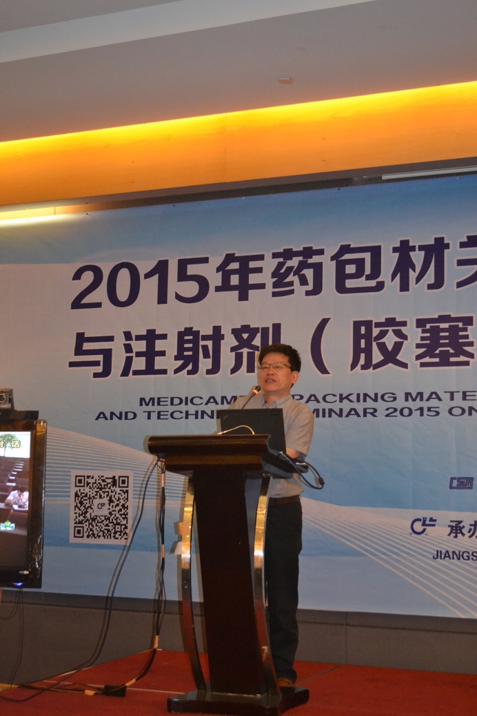 6月23日,由中國藥品監(jiān)督管理研究會主辦、我公司承辦的2015藥包材關(guān)聯(lián)技術(shù)審評及DMF備案與注射劑(膠塞類)包裝材料質(zhì)量研討會在常州維景國際大酒店召開。中國藥品監(jiān)督管理研究會、中檢院包裝材料與藥用輔料檢定所、國家食品藥品監(jiān)督管理局藥品包裝材料科研檢驗中心、浙江省食品藥品檢驗研究院包裝材料檢驗所、無錫市食品藥品監(jiān)督管理局專家領(lǐng)導(dǎo)及來自全國各地的150余名制藥界代表參加了此次會議。