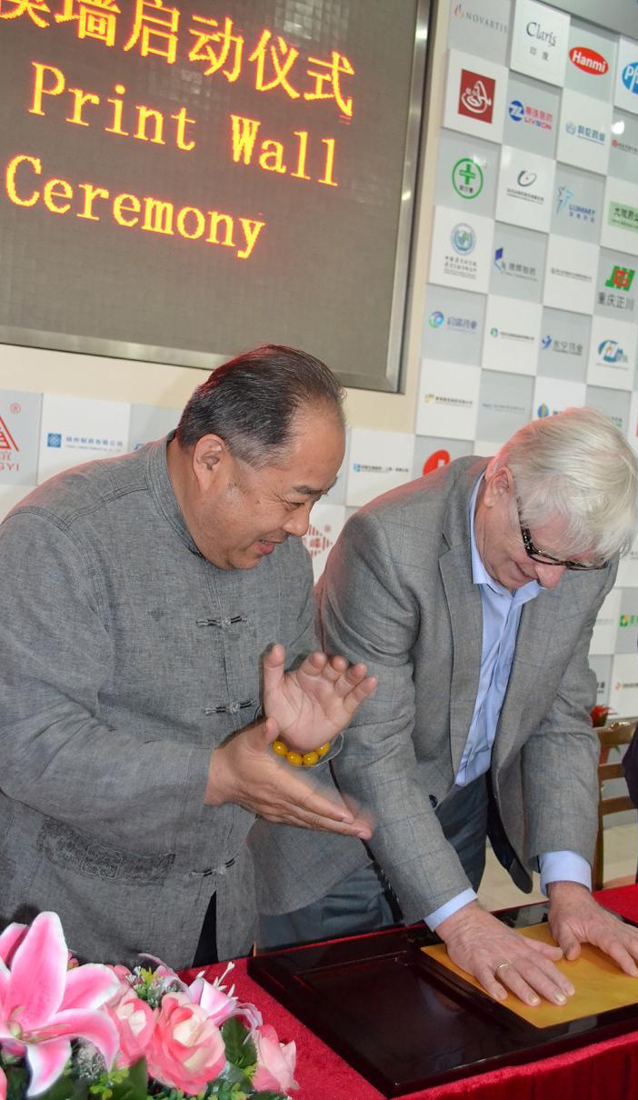 現(xiàn)場(chǎng),留下手印的第一人是公司技術(shù)顧問Otto先生,Otto先生已是80多歲高齡,他不顧年邁身體,千里迢迢兩次轉(zhuǎn)機(jī)從歐洲來到中國、來到華蘭,帶來新的思想,理念,給予華蘭技術(shù)引導(dǎo)。三年來,在Otto先生的支持和幫助下,華蘭的生產(chǎn)工藝得到改進(jìn),技術(shù)不斷創(chuàng)新,產(chǎn)品質(zhì)量得到提高,他的貢獻(xiàn)有目共睹,他的敬業(yè)精神更讓所有華蘭人欽佩不已。作為華蘭手模第一人,Otto先生非常激動(dòng),對(duì)董事長華國平,總經(jīng)理華一敏先生的認(rèn)可表示感謝,他說加入華蘭,與大家一起共事的三年,是他畢生最難以忘懷的經(jīng)歷,也是對(duì)他事業(yè)的挑戰(zhàn),在此期間,他也見證了所有華蘭同仁的努力與進(jìn)步,如果再有一次機(jī)會(huì),他會(huì)好好學(xué)習(xí)中文,與大家更好的溝通、交流,同時(shí)也祝愿華蘭發(fā)展能夠更加美好。