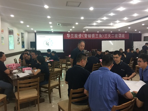 培訓(xùn)既有助于提高員工綜合素質(zhì),幫助員工出色完成本職工作,又能積極促進(jìn)員工個(gè)人的職業(yè)發(fā)展,提升個(gè)人競(jìng)爭(zhēng)力。為此,公司行政人事部和銷售部共同組織了《營銷鐵三角》三天兩夜訓(xùn)戰(zhàn)的培訓(xùn)課程,此培訓(xùn)從6月2日-6月4日共為期三天,邀請(qǐng)了百思特管理咨詢集團(tuán)的資深講師來做培訓(xùn),華蘭股份公司董事長華國平、總經(jīng)理華一敏、銷售副總肖鋒、以及全體銷售人員參加了此次培訓(xùn)。此次《營銷鐵三角》培訓(xùn)課程,大家收獲很多,好評(píng)如潮,獲得了圓滿的成功!
