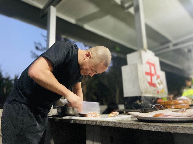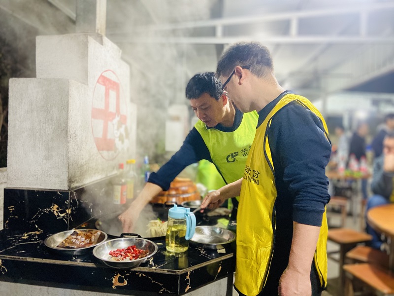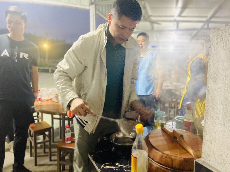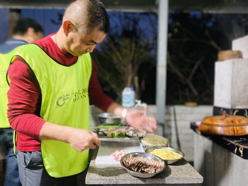 按照分組開始準(zhǔn)備大鍋灶,親自動手燒制一桌美味佳肴。